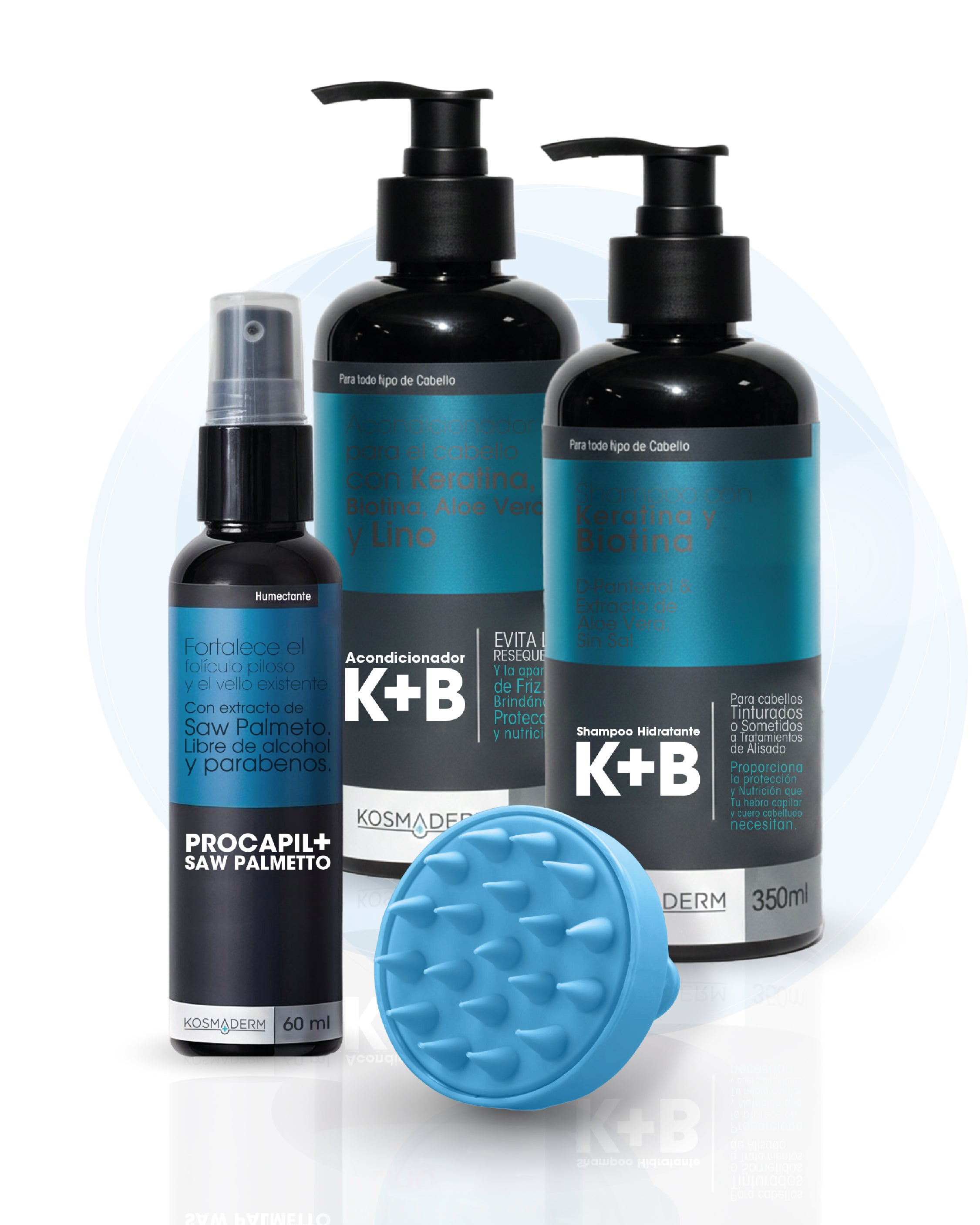 Una combinación estratégica diseñada para mejorar la apariencia del cabello debilitado, aportando mayor resistencia, suavidad y sensación de densidad desde la primera semana de uso constante. INCLUYE OBSEQUIO: CEPILLO MASAJEADOR CAPILAR ¿Qué incluye esta rutina? 🧴 Shampoo K+B (Keratina + Biotina)Limpia suavemente mientras ayuda a fortalecer la fibra capilar. Su...